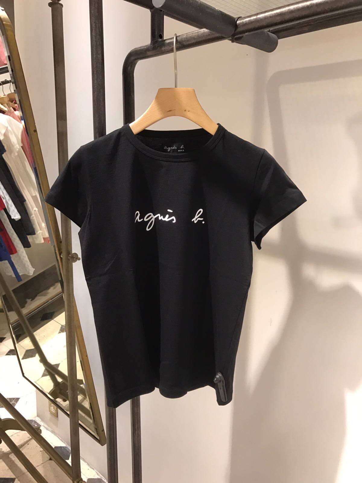 Spring and summer new agnes b cursive PALEESIJA letters pure cotton short-sleeved T-shirt dark blue women's clothing