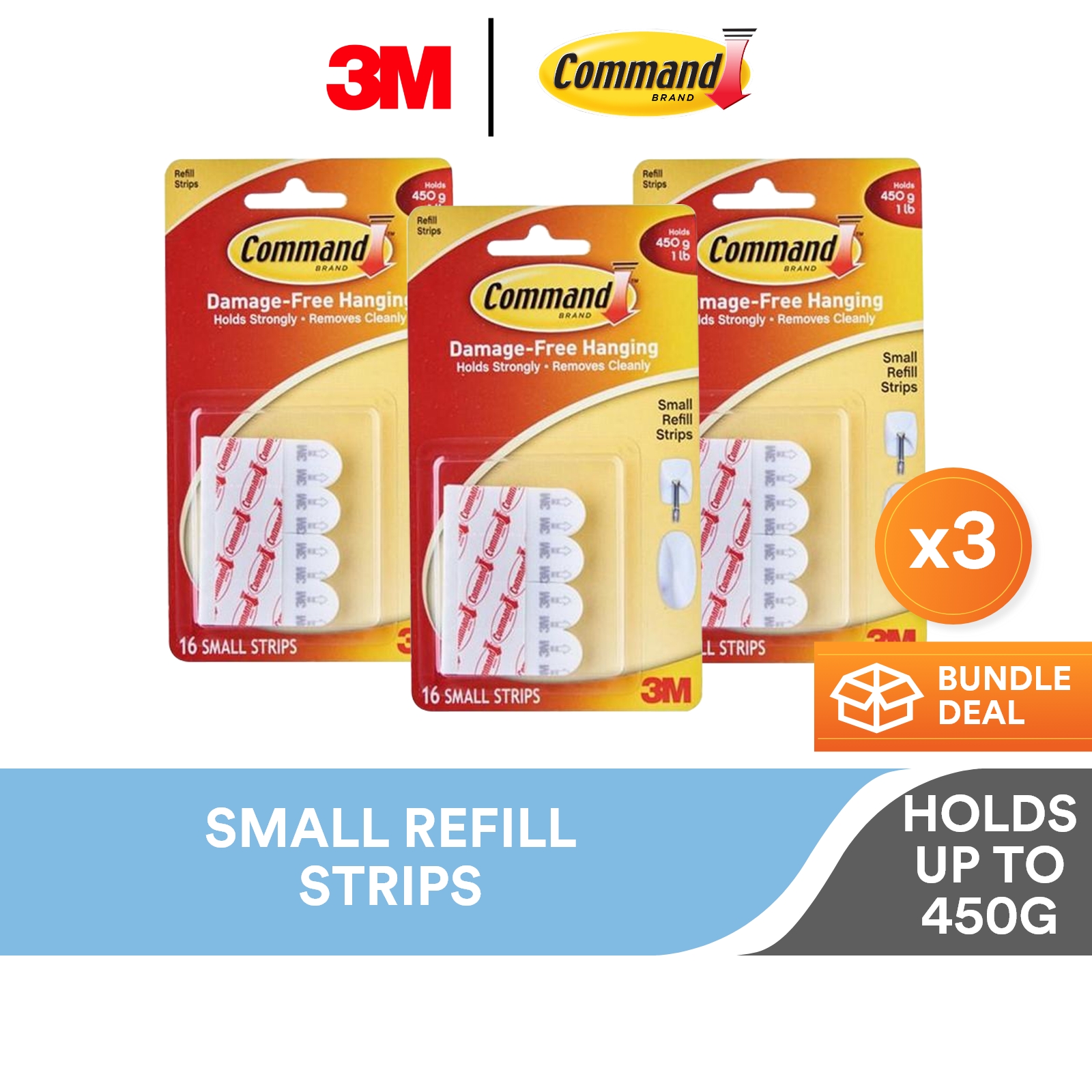 3M Command White Small Refill Strips, 17022P, 16/Pack, Holds Up to 450g, Damage Free, Holds Strongly