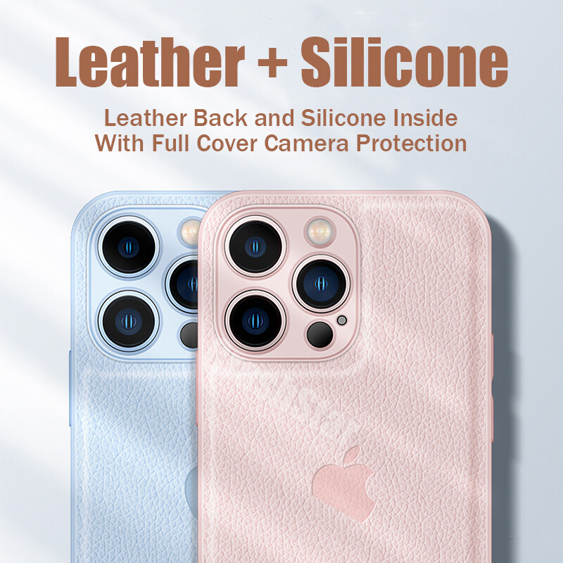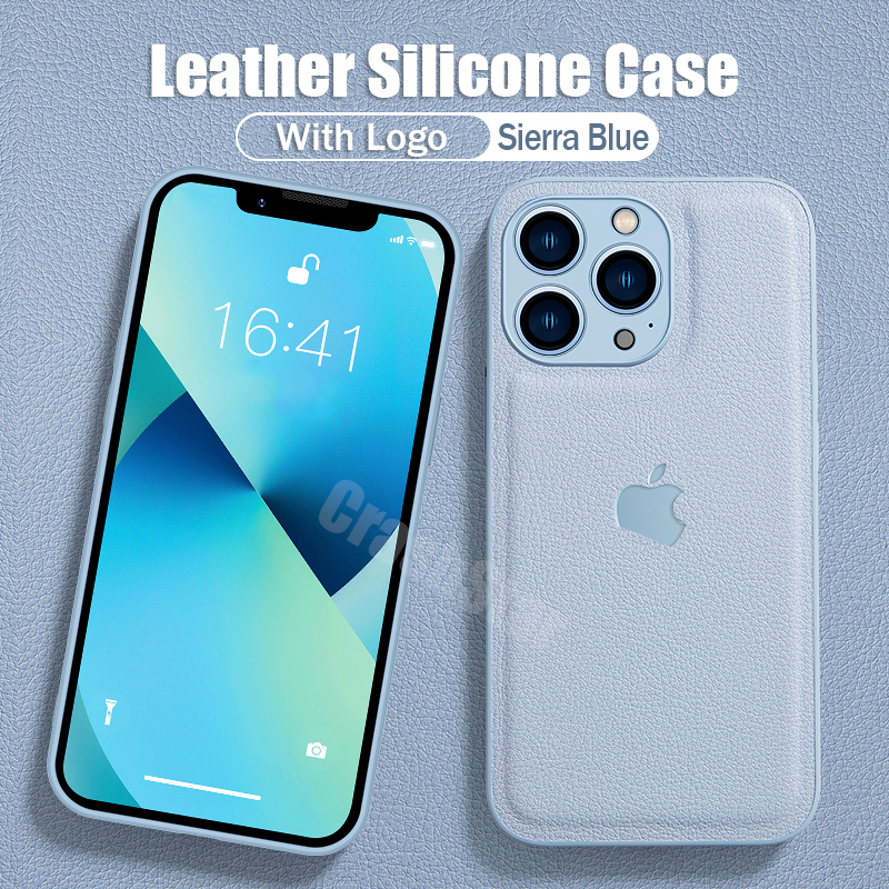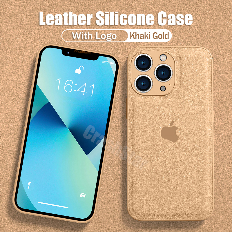 CrashStar With Logo Leather Add Silicone Phone Case For iPhone 14 13 12 11 Pro Max XS XR X 8 7 Plus + SE 2020 Shockproof Phone Casing Simple Soft Phone Cover With Full Cover Lens Camera Protection She