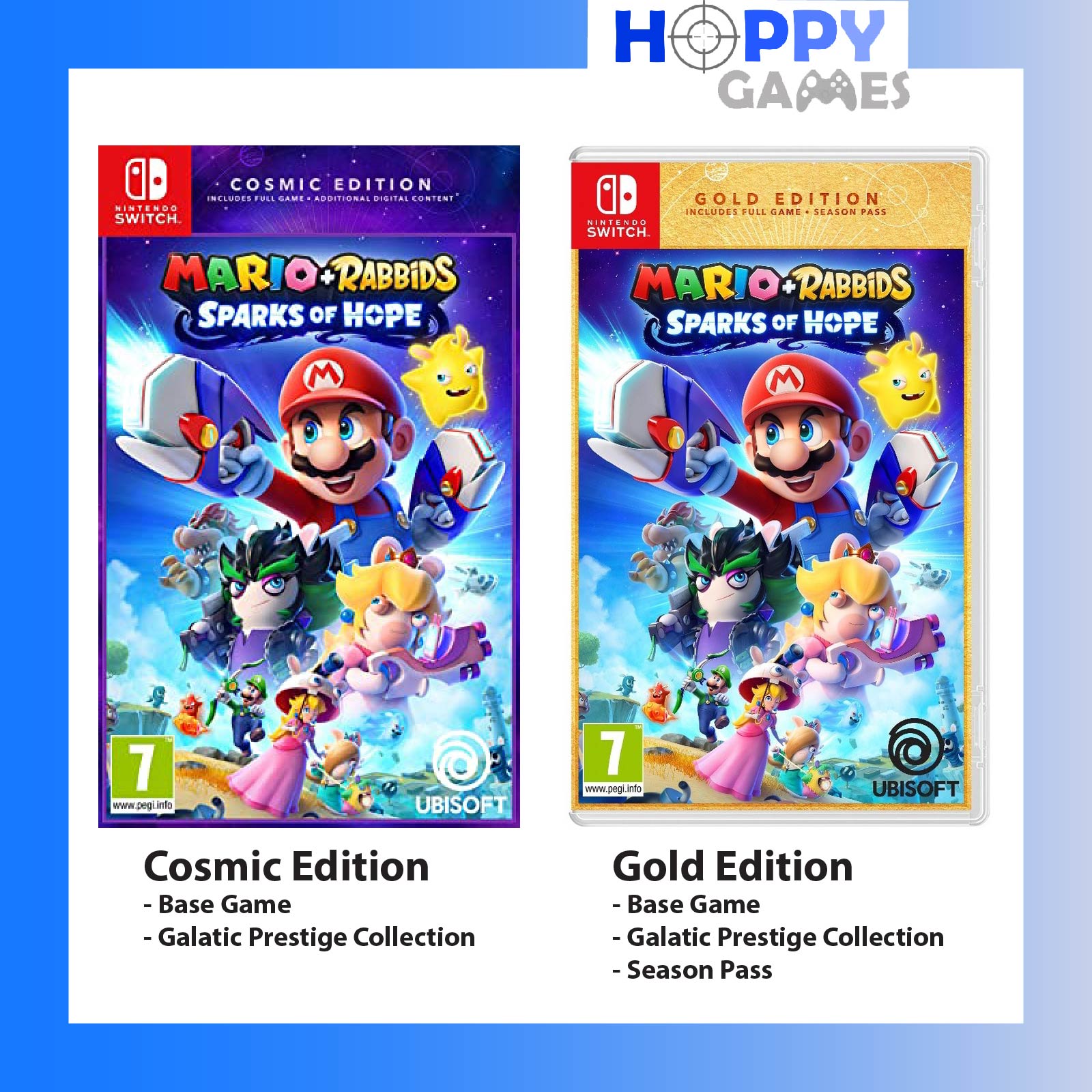 Team up with Mario, Luigi, Princess Peach, Rabbid Peach, Rabbid Luigi, and their friends on a galactic journey to defeat a malevolent entity and save your Spark companions. Explore planets throughout the galaxy as you uncover mysterious secrets and compelling quests!