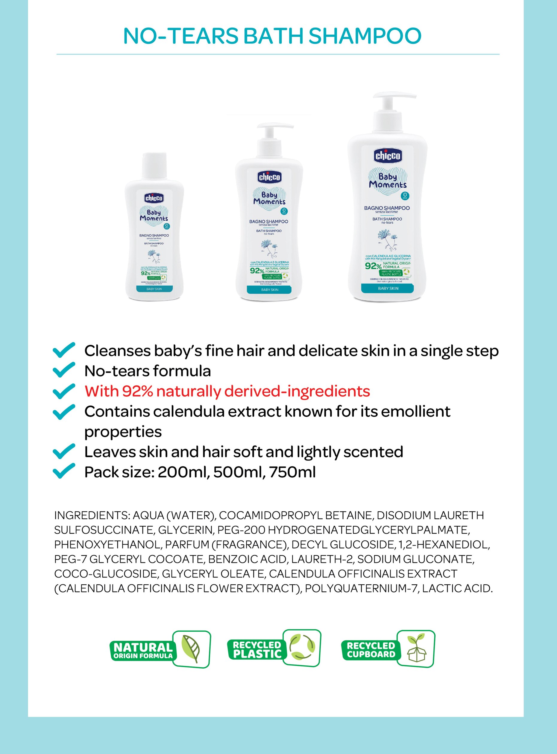 - Moisturises baby’s skin, making it wonderfully smooth and soft