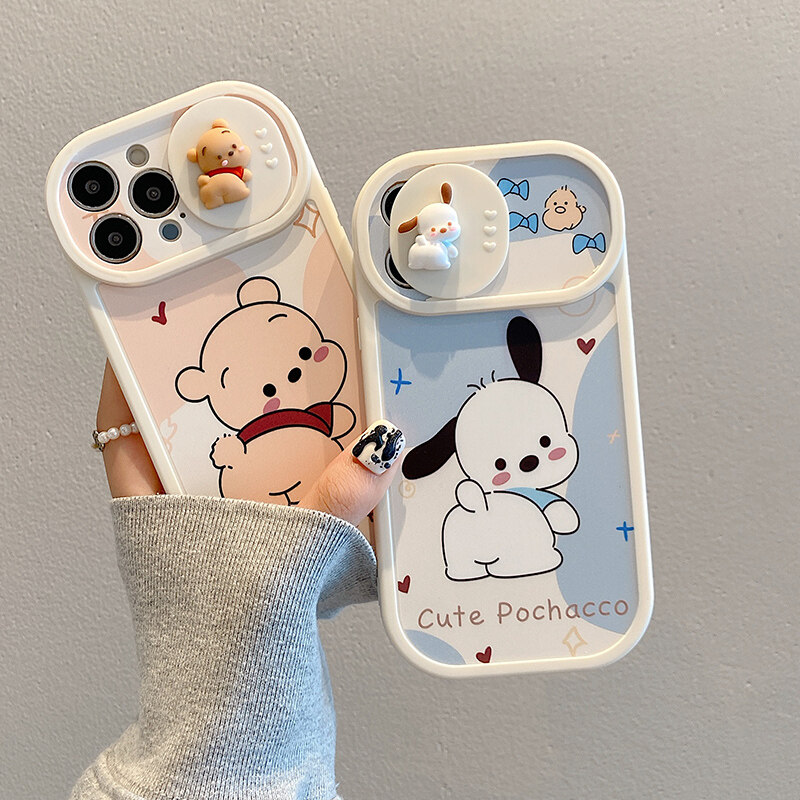 CrashStar Slide Camera Protection Cartoon Cute Anti-fall Phone Case For iPhone 14 13 12 11 Pro Max Plus X XR XS Max Soft Silicone Shockproof Phone Casing Cover With Full Cover Lens Camera Protection S