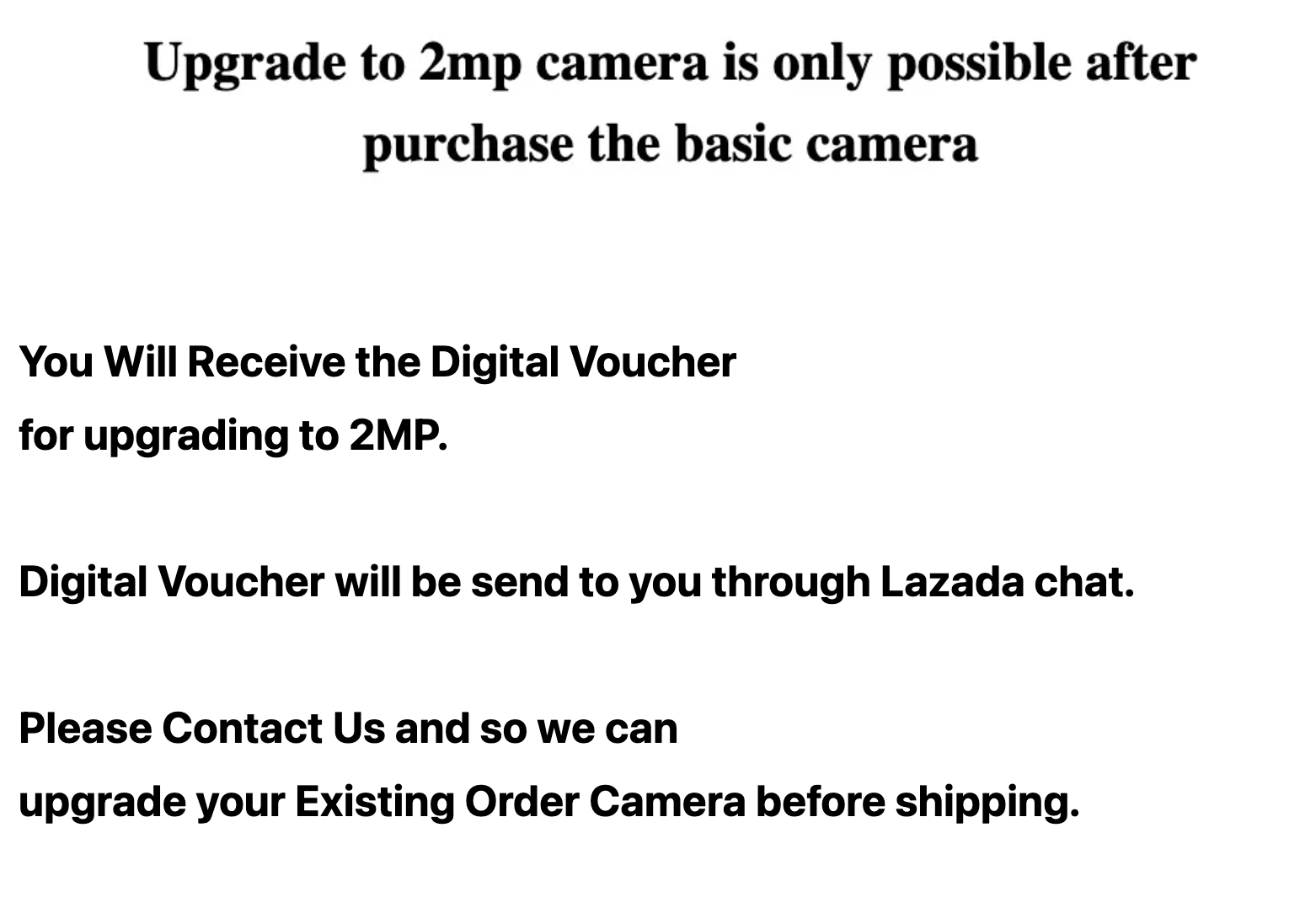 - You Will Receive the Digital Voucher for upgrading to 2MP.