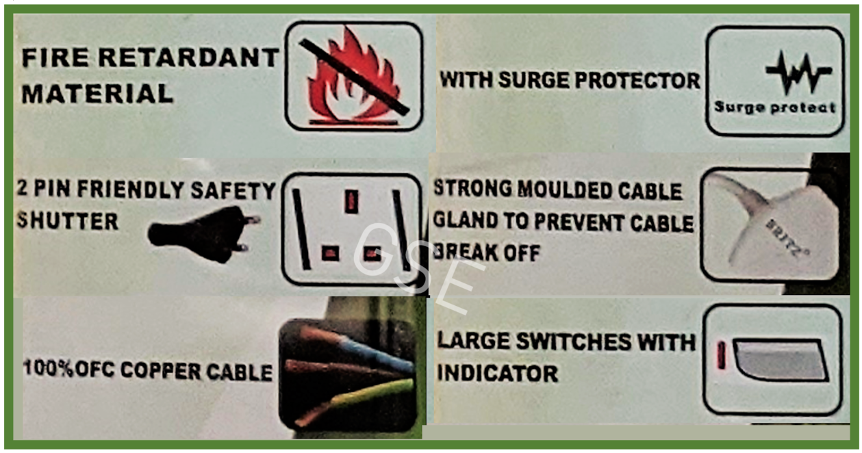 2 Way 3 Meter Multi Power Extension Socket Cord Plug with Surge Protector 2Way 3m Britz GSE